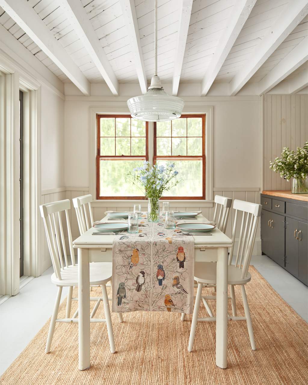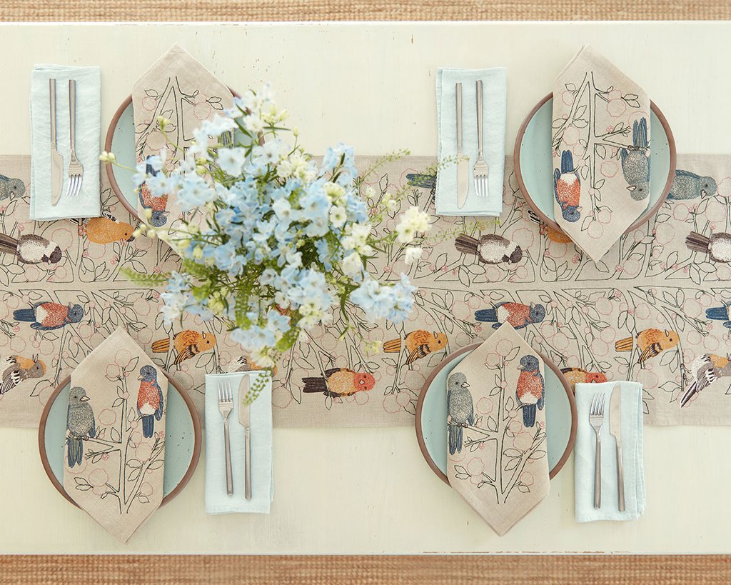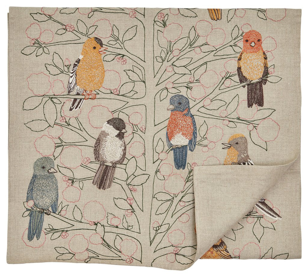 Songbirds Tree Embroidered Linen Table Runner