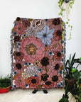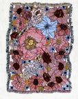 Aprox. 50" x 68", not including fringe. 100% cotton. Machine wash cold, tumble dry low. Made in the U.S.A.